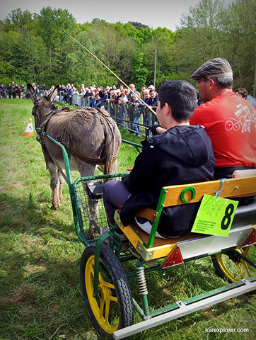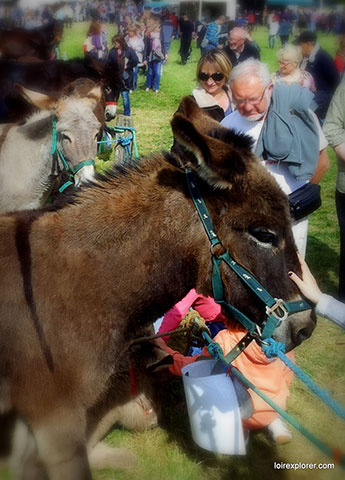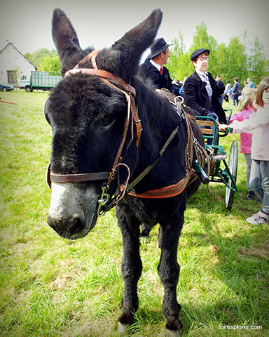 La Fête des ânes de Poulaines, Indre, est la rencontre à ne pas manquer, entre amateurs et professionnels. Pour sa 20ème édition, elle a proposé de nombreuses animations : des épreuves pour départager les ânes, des balades en calèche, la fanfare, le repas festif, le marché des produits locaux, la brocante… Voyez vous même sur les photos ci-dessous. Chaque éleveur est fier de montrer ses ânes. Il en vient de toute la France. Chaque cavalier redouble d’effort pour montrer au concours qu’une randonnée à dos d’âne vaut bien une randonnée à cheval. Ici, c’est le caractère du baudet qui décide s’il sera un champion d »‘équitation » ou non. Parfois lorsque le caractère est trop fort, l’âne refuse tout simplement de passer la rivière mais les applaudissements retentissent de plus bel car ici c’est la « fête à l’âne« .
